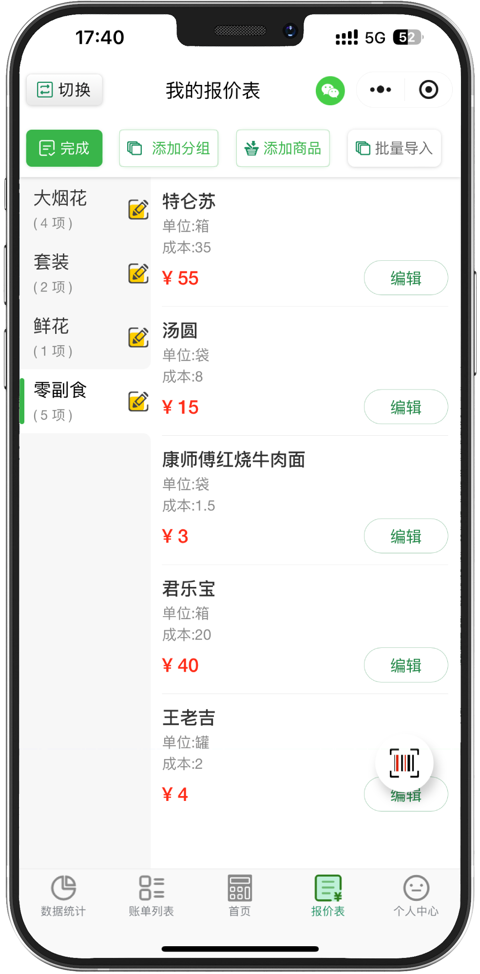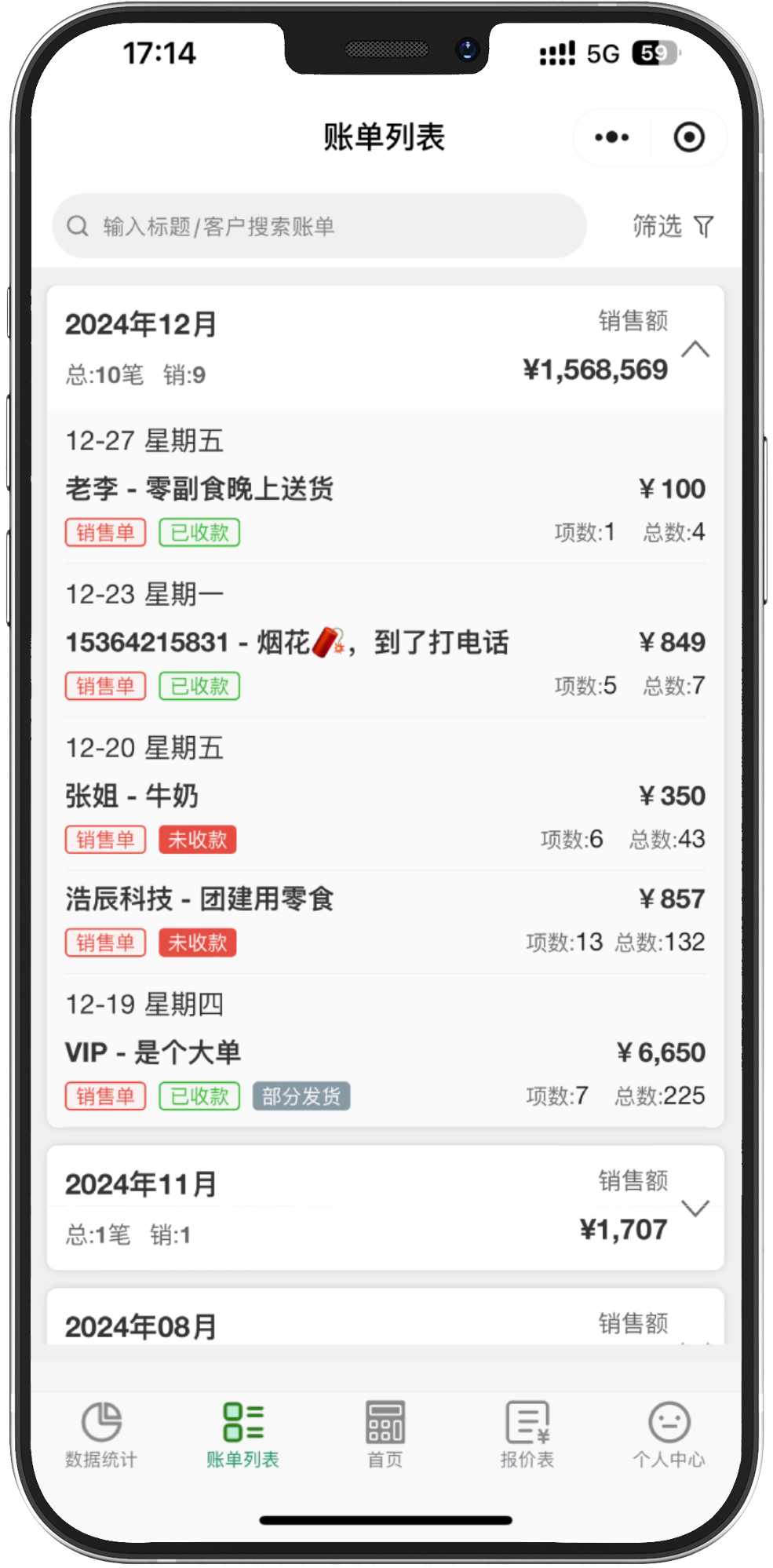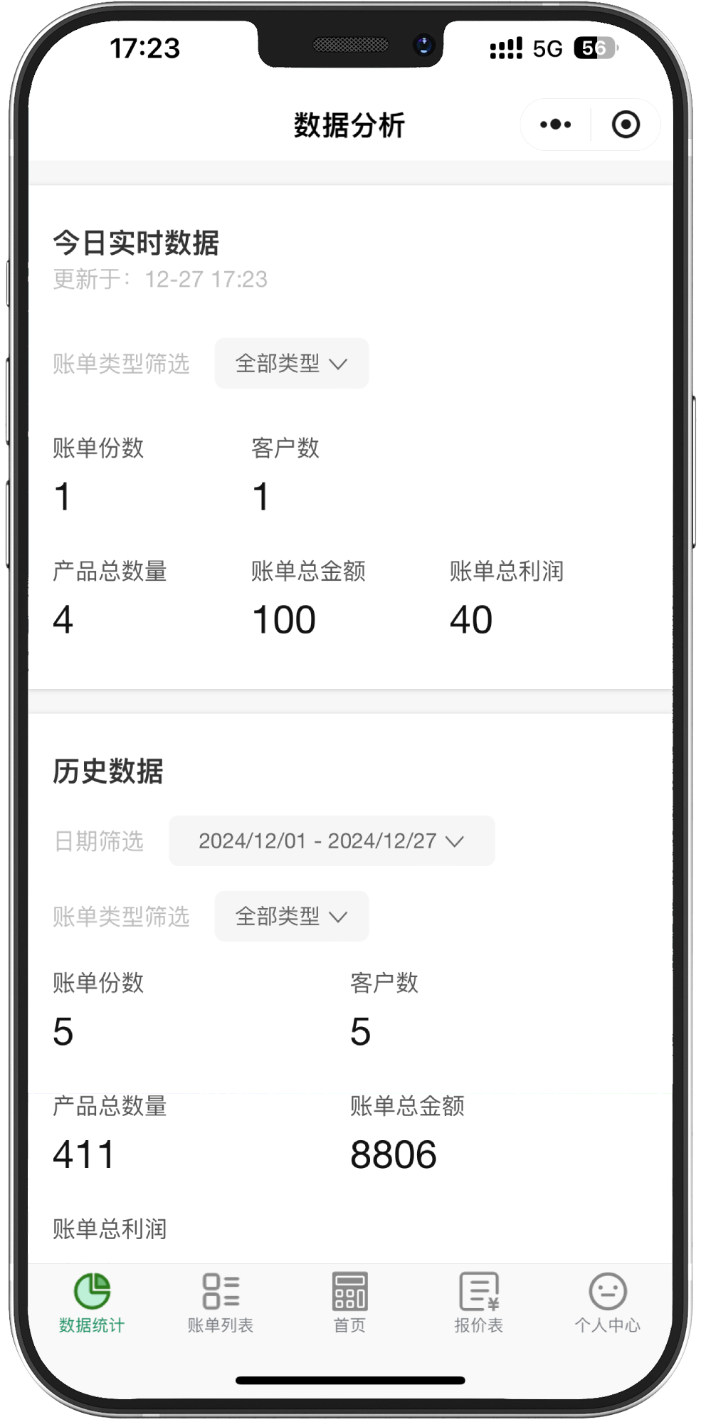 一键添加到账单,小程序、海报图、excel多种方式分享给客户报价